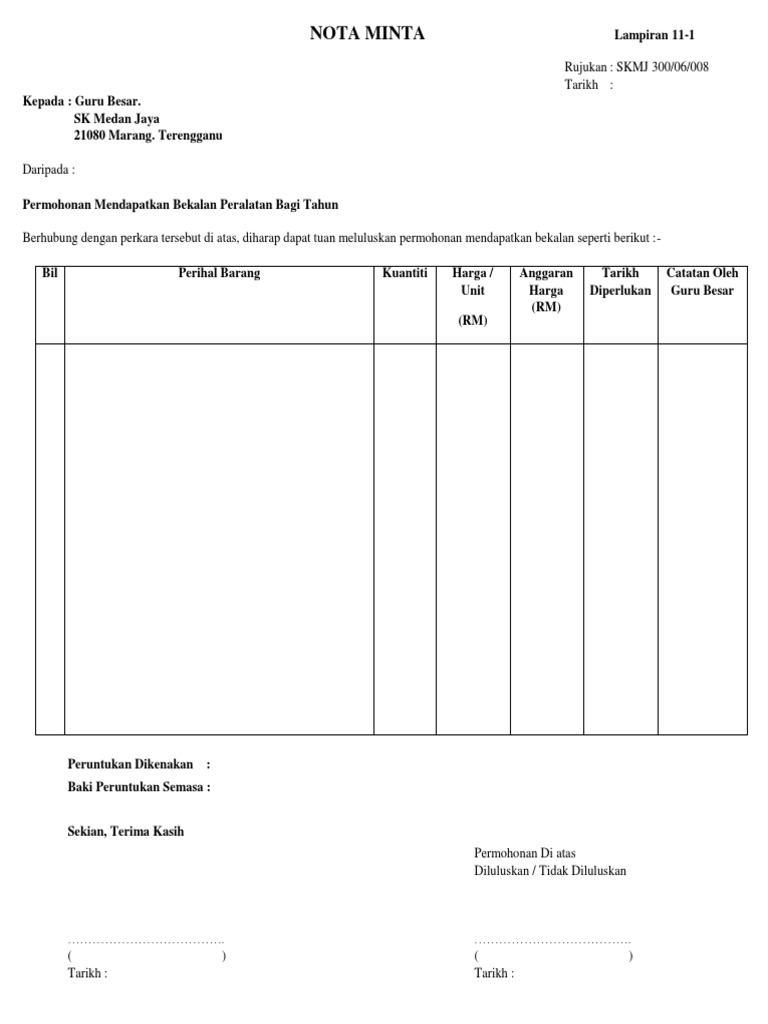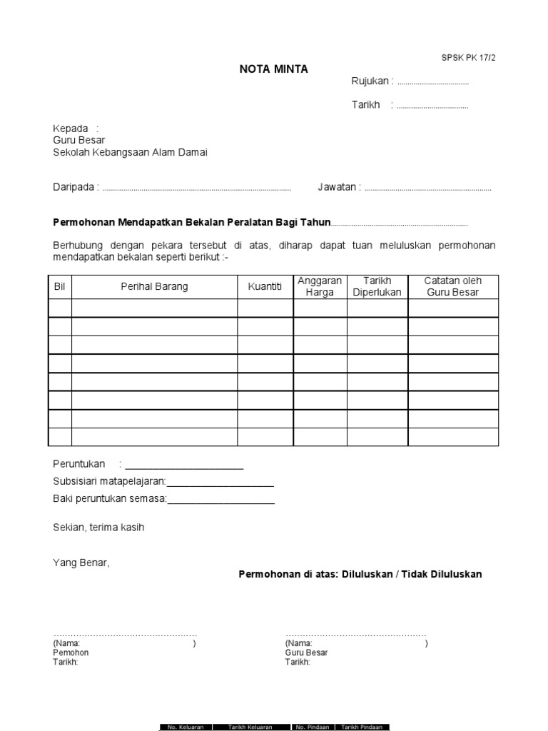 Contoh borang nota minta bekalan bahan mentah prasekolah. Nota-mintadoc - sekolah kebangsaan taman medan km 12 jalan klang lama 46000 petaling jaya selangor kod sekolah bba 8220 telefon 03-7782 7833 fax. August 28 2020 0.
