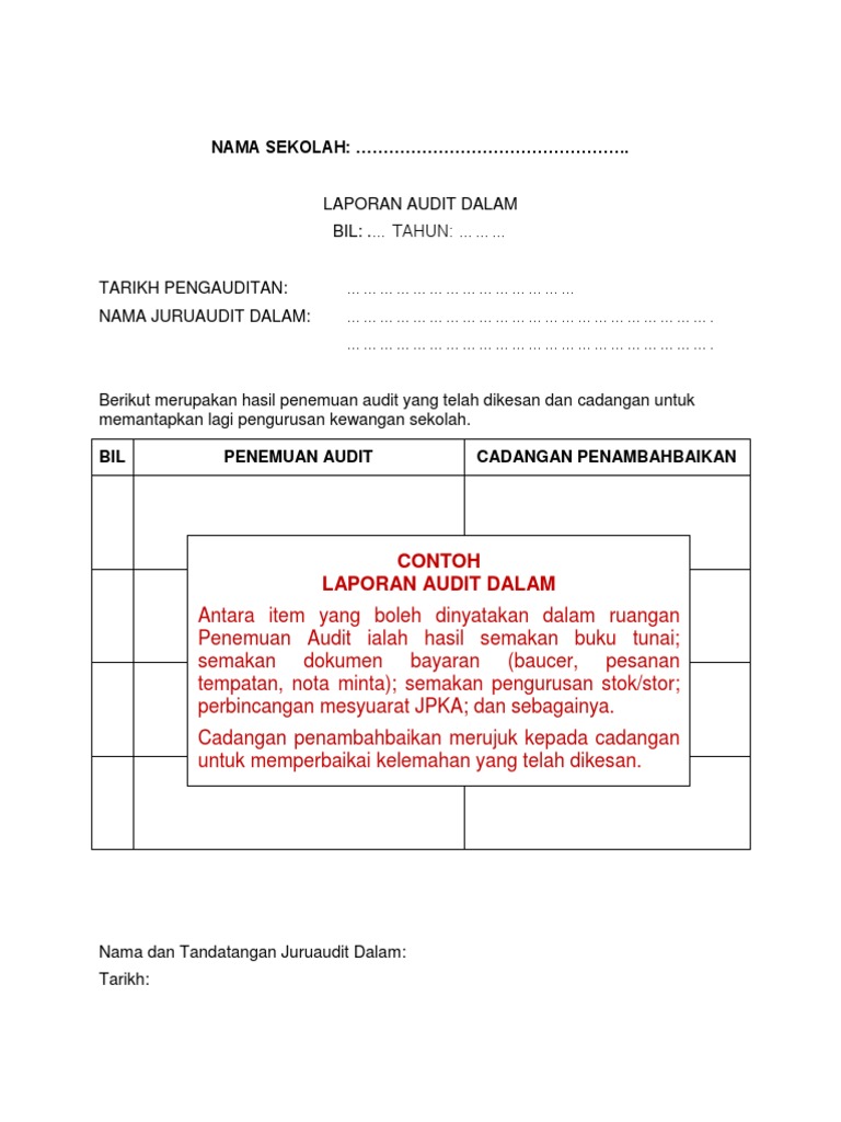 Contoh Laporan Audit Dalaman Kewangan Sekolah Audit Kinerja